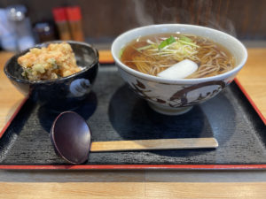 そばを食べるかカツ丼を食べるか迷いに迷って、小さいかき揚げ丼のセット(・∀・)